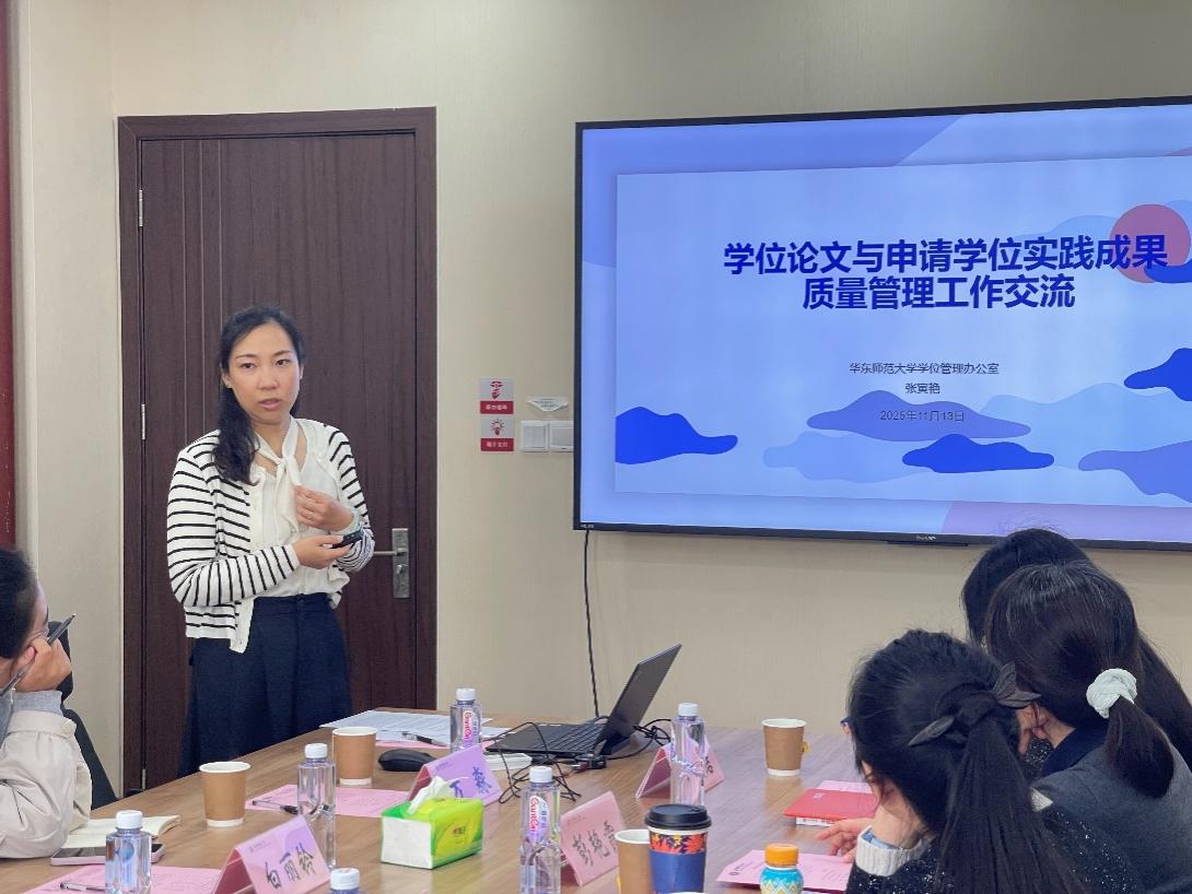 活动以主题分享与专题讨论相结合的形式展开。张寅艳作首场分享,题为《学位论文与申请学位实践成果质量管理工作交流》。她系统梳理了学位管理的关键环节,重点强调培养过程质量控制的核心地位,详细解读了预答辩、论文检测、盲审、答辩准备及校外专家参与等全流程审核机制,并通过近年学位授予数据的趋势分享,展现了我校论文质量的稳步提升,呼吁持续优化工作流程以追求更高学术目标。