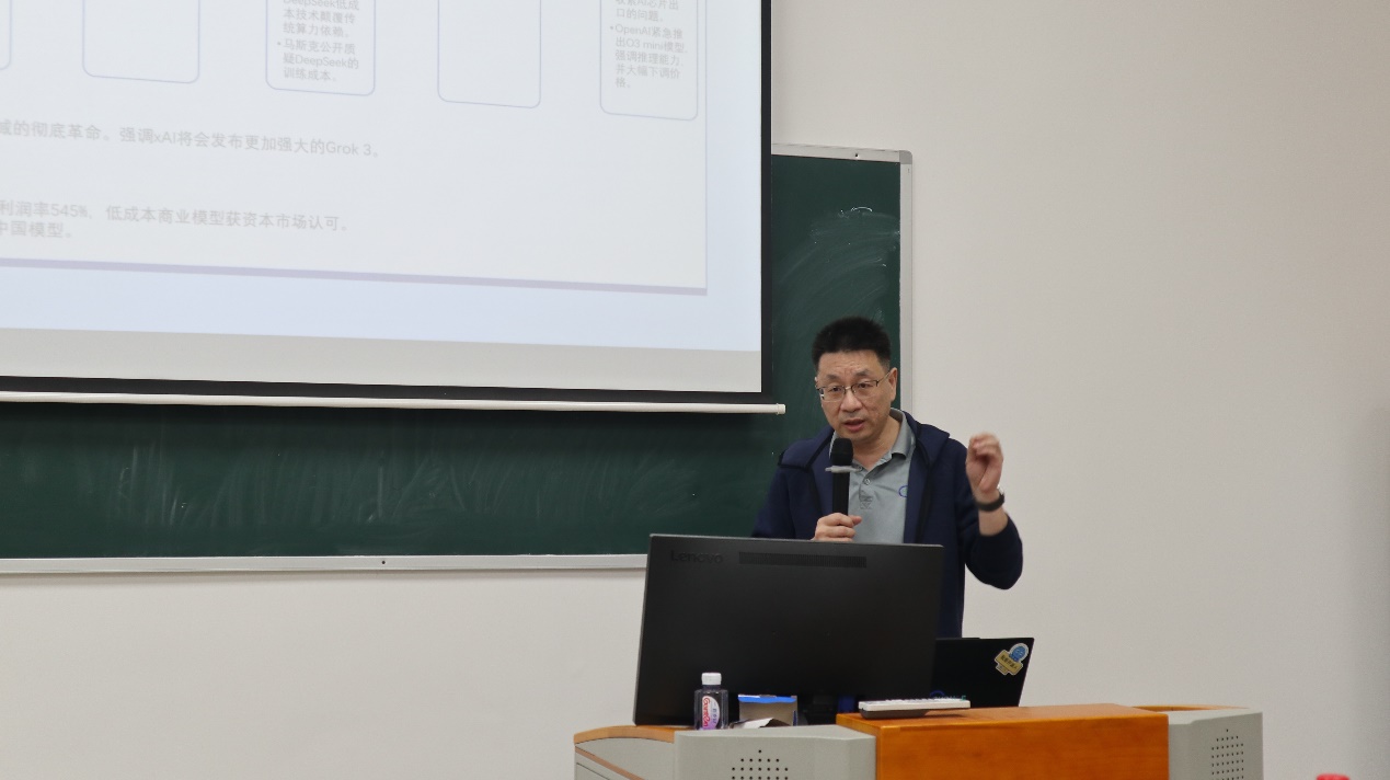 随后,2023-2024级电子信息工程博士班的三位博士生从各自所处的行业角度分享了他们的工作和研究成果。民用航空空中交通管制员王艺霖,以技术视角切入,介绍低空经济的内涵及发展、低空空中交通面临的挑战及关键技术。365英国上市公司信息化治理办公室高级工程师冯骐,介绍学校大语言模型平台的技术架构、演进路线和目前的应用探索情况。万家基金AI项目负责人朱华,分享了DeepSeek本地部署方案与大模型在证券行业在投研、营销、客服等业务领域的应用与探索,以及知识库、Agent智能体等方面的大模型应用。紧接着,参会者们围绕大语言模型的最新研究成果、开源项目的实践经验以及未来发展趋势等多个方面展开了热烈讨论。