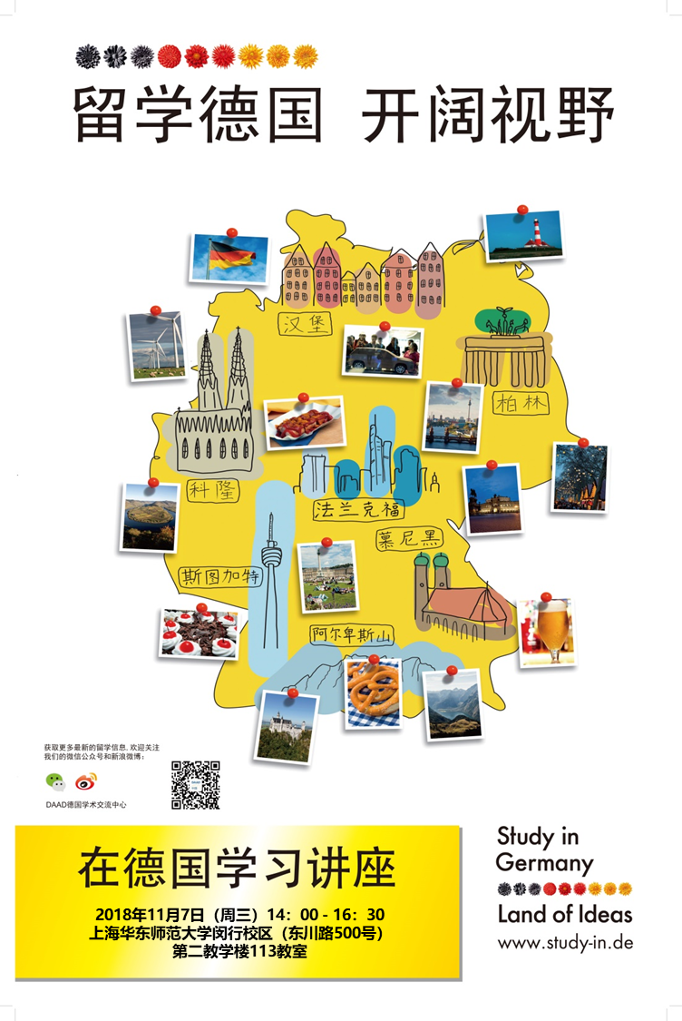 德国学术交流中心上海代表处将携德国高校与机构代表,在我校举办“在德国学习”专场讲座,向所有对留学德国感兴趣的与会者介绍德国高等教育概况以及中国学生入学条件等赴德留学和签证相关的全面信息。报告结束后,与会者可以在个人咨询环节和工作人员进行一对一的交流和咨询。具体信息如下: